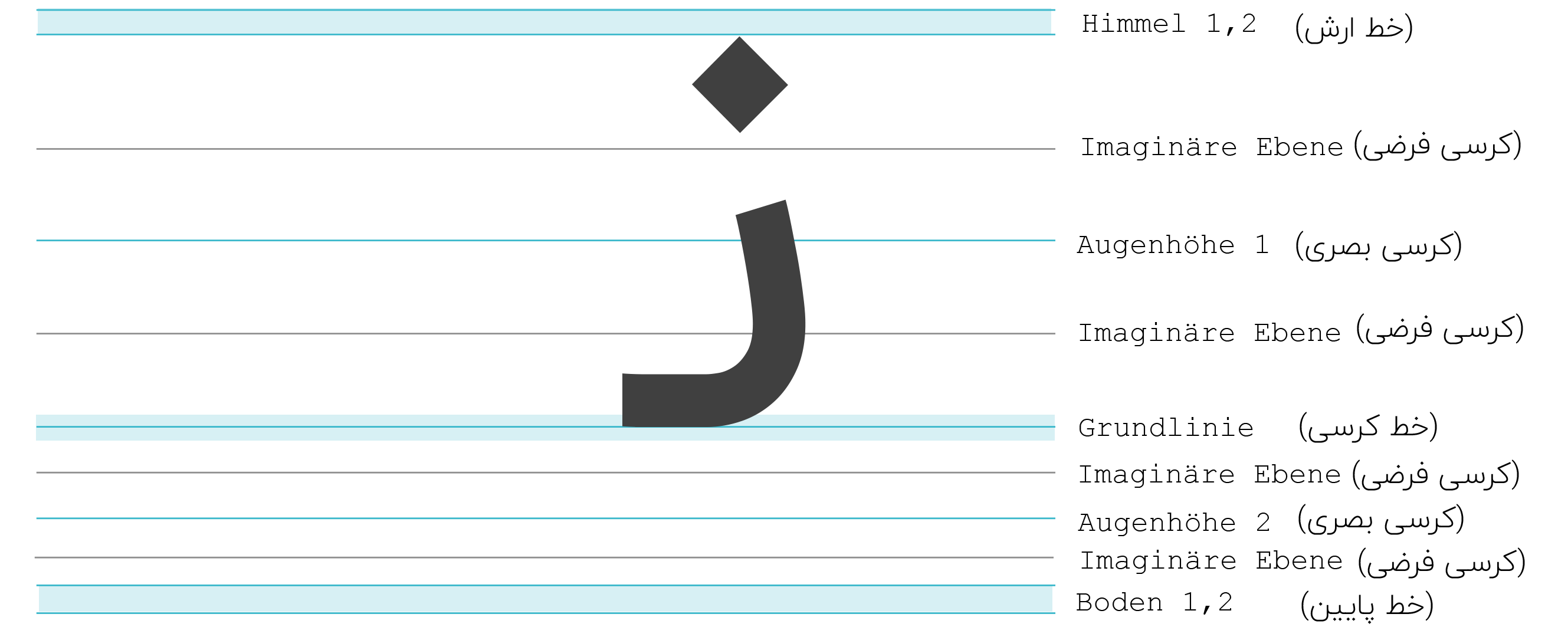 Die Schönheit der persischen Schrift weist auf viele Stile und Techniken hin, die zahlreich faszinierende Formen und Chancen bietet die Schrift variabel zu gestalten. Trotz der Beachtung von Dos and Don'ts in der Gestaltung, ist kein optimaler Lesefluss möglich ohne die Buchstabenformen zu unterbrechen.
