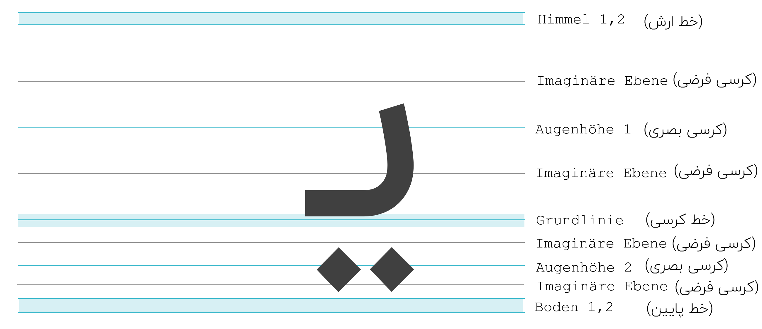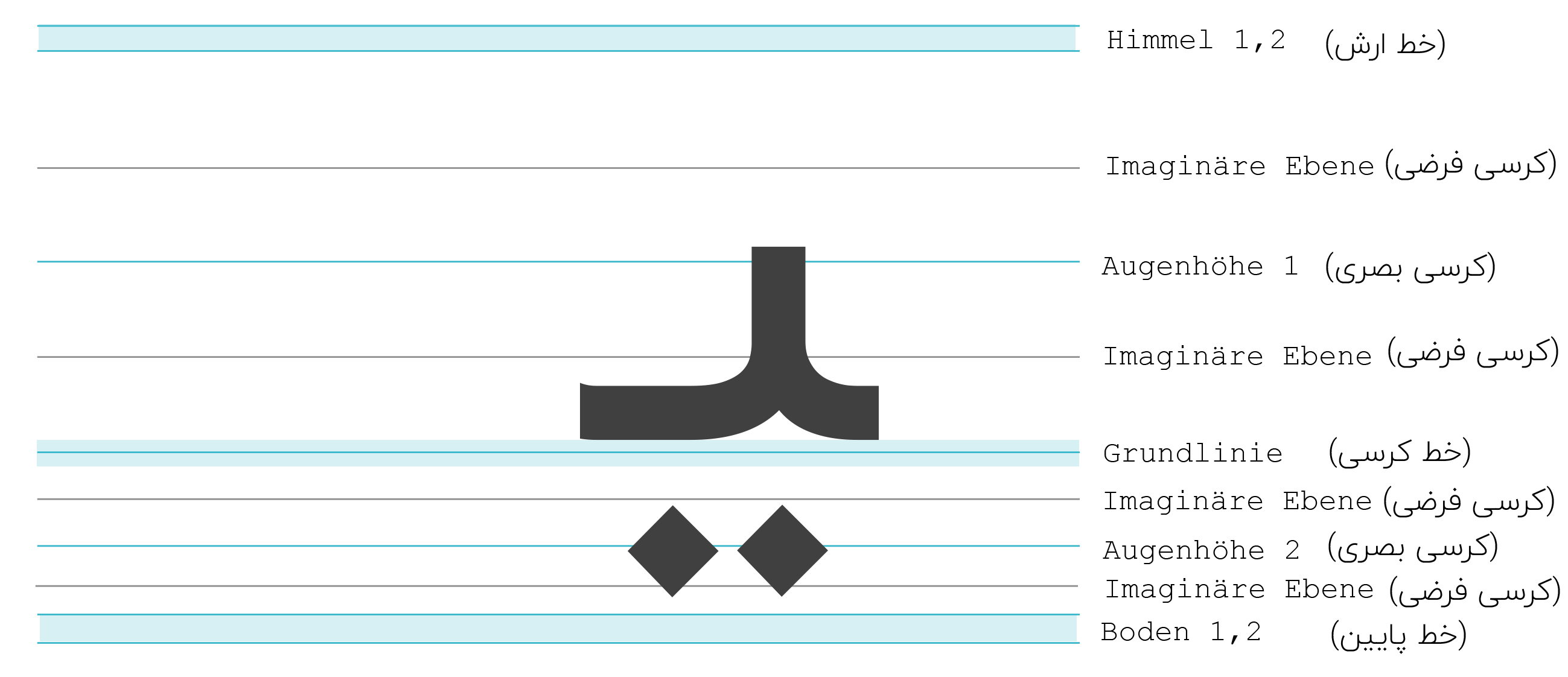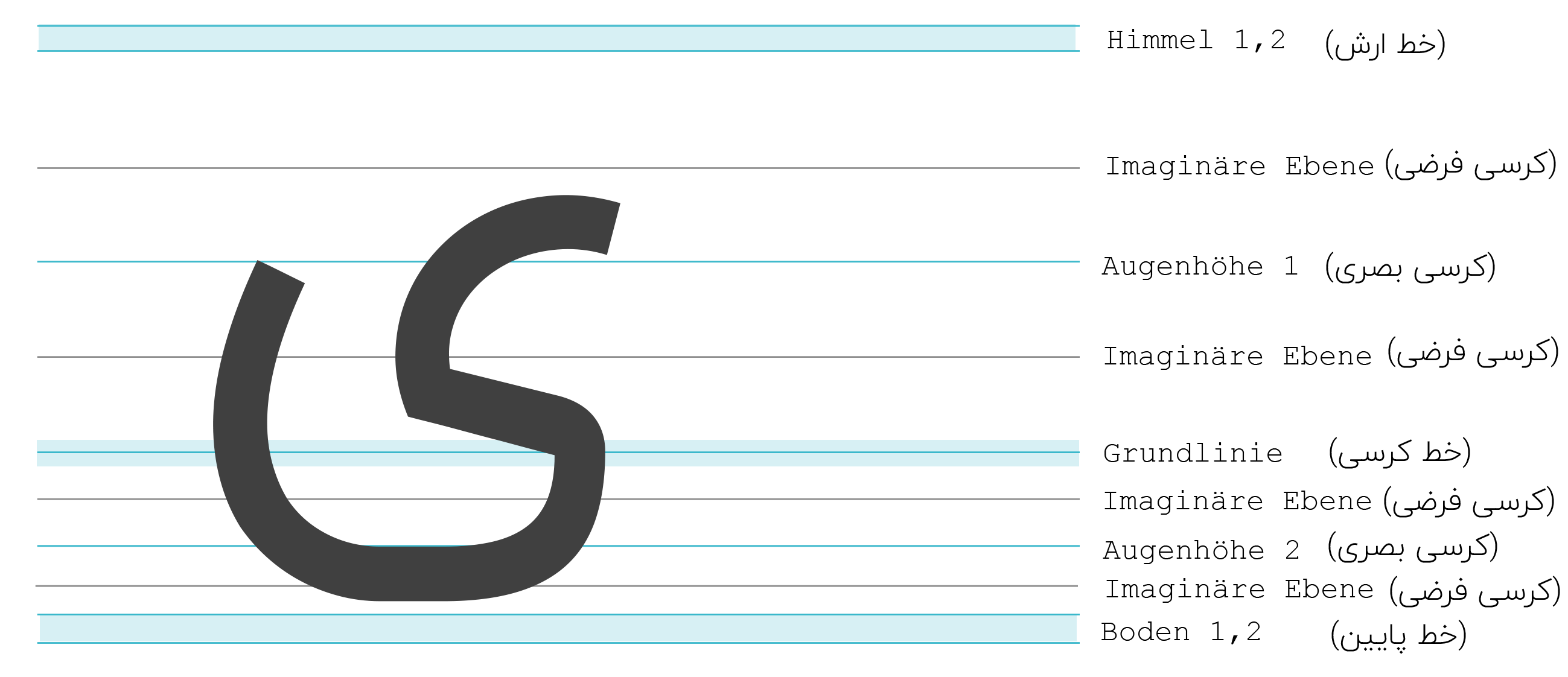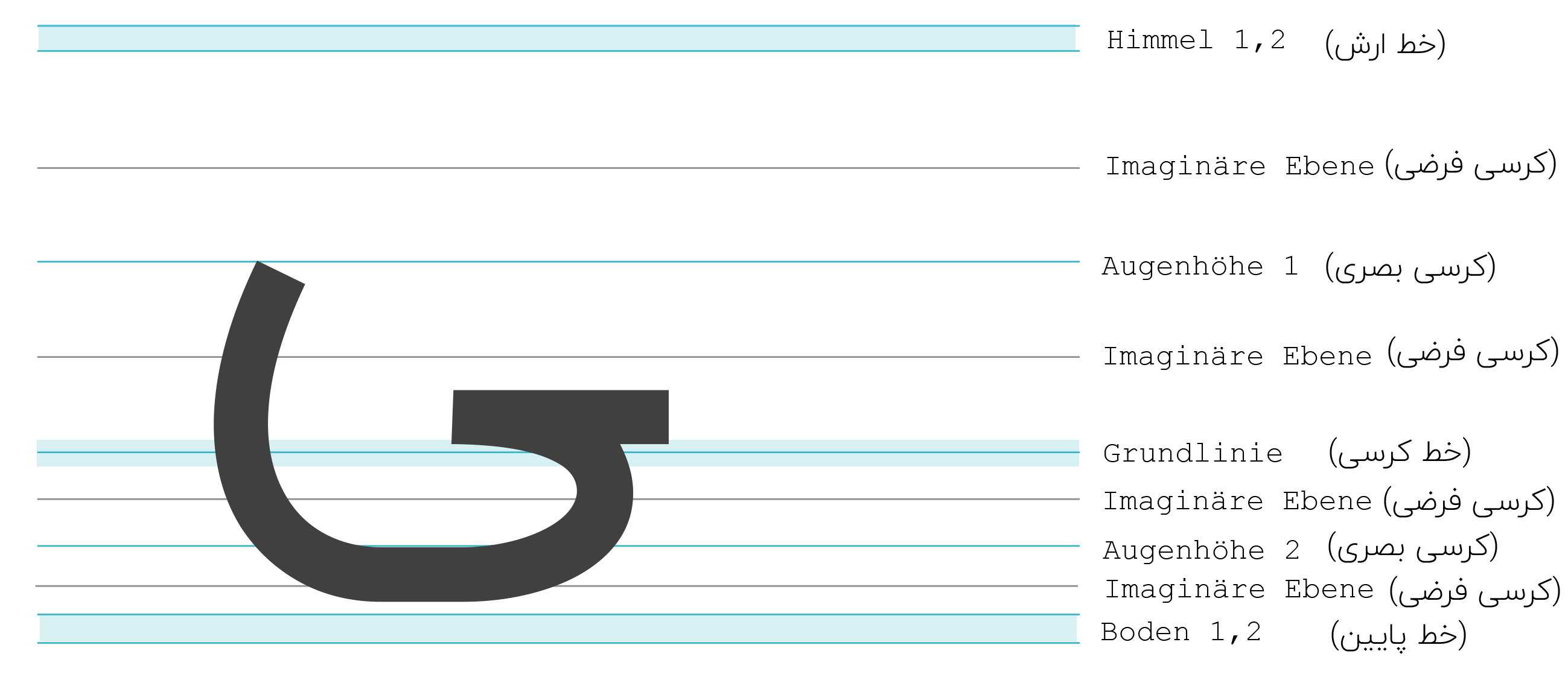 In der Formsache persischer Kalligrafieschriften spielen geometrische Prinzipien und Proportionen, wie Höhe, Breite und Linienführung des Buchstabens eine wesentliche Rolle. Die Höhe und Breite der Schriftzeichen und ihre Varianten stehen in bestimmten Verhältnissen zueinander.