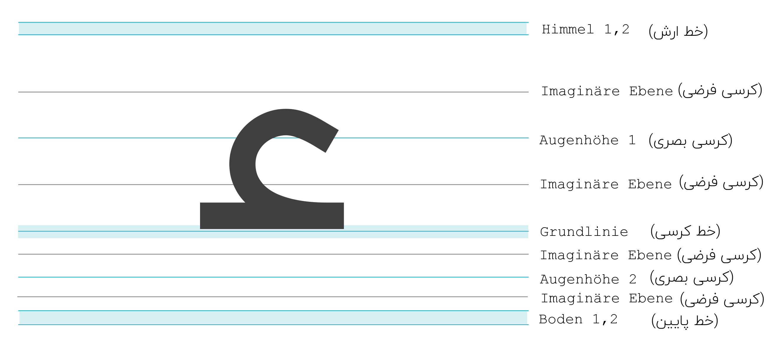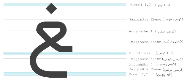 Die Farsi Schrift ist eine Kurrentenschrift (Schreibschrift), die nur aus Minuskeln besteht. Jedoch unterscheiden sich die Buchstaben in ihrer Größe und Breite. Im Gegensatz zu der lateinischen Schrift gibt es hier keine klaren Buchstabenhöhen, sondern diverse unterschiedlichen Ausprägungen.