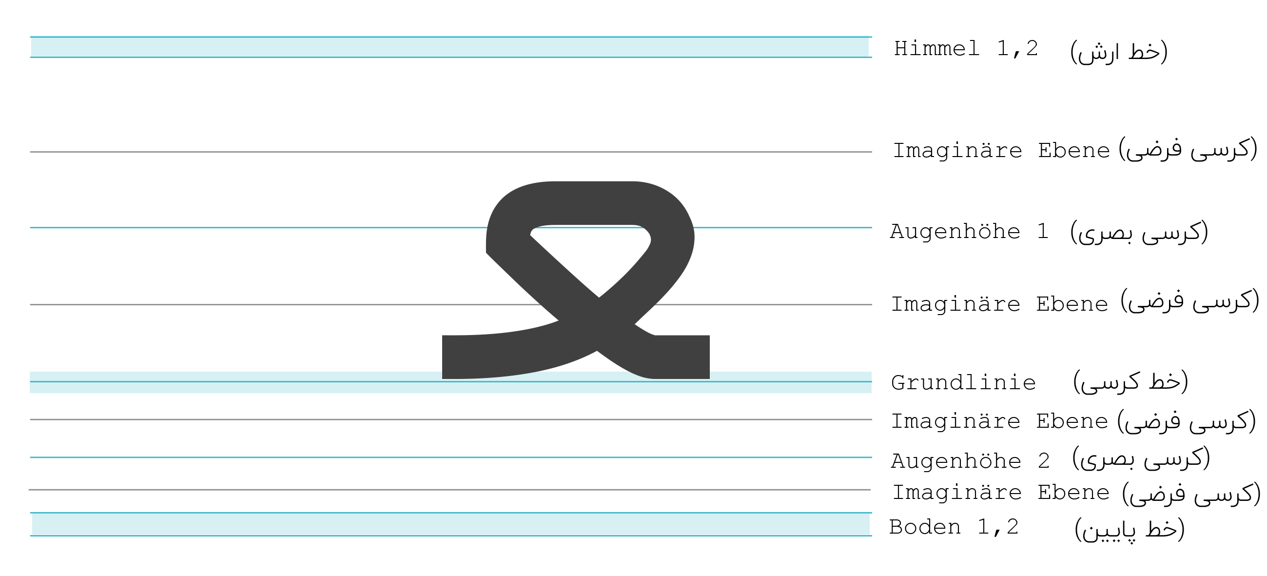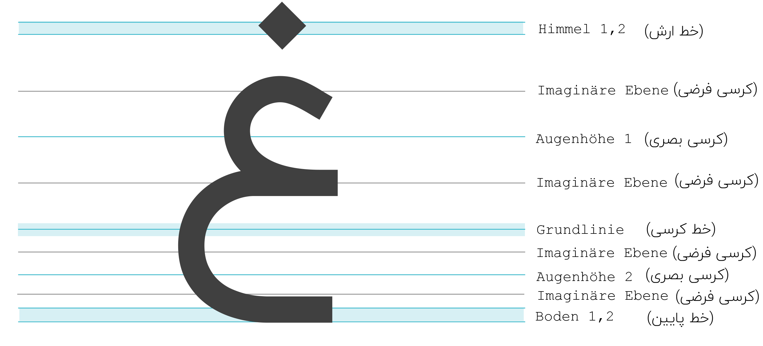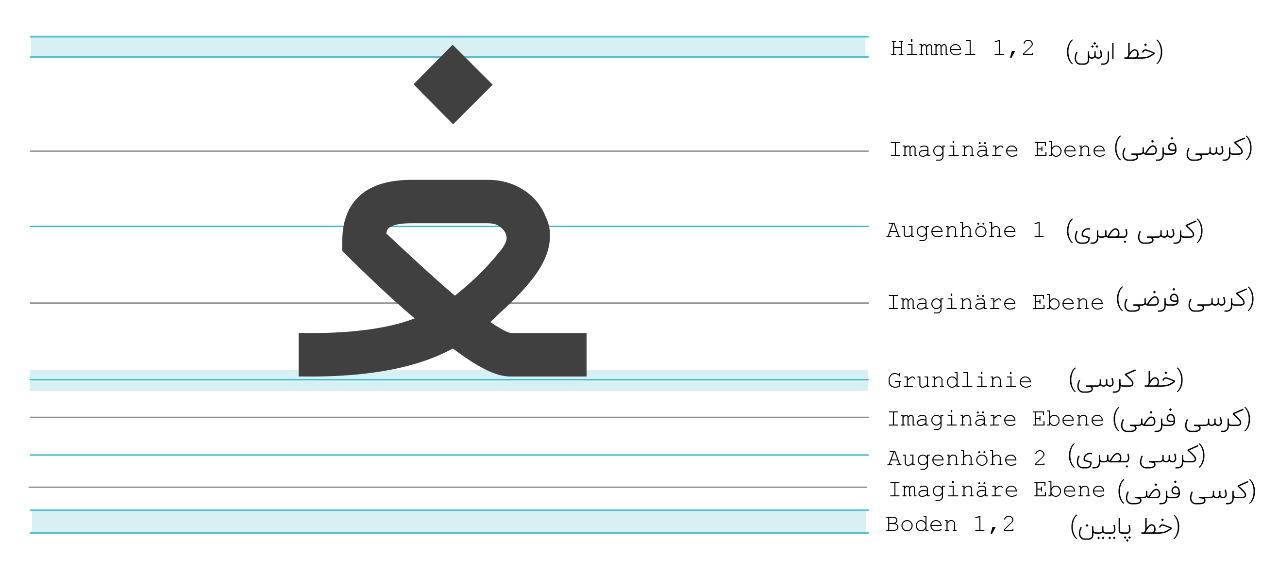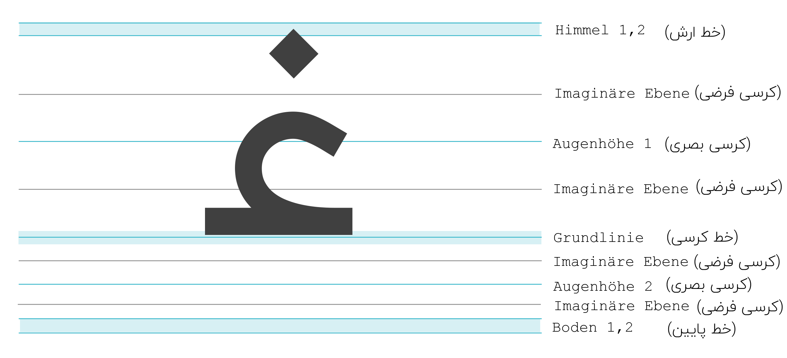 In der Formsache persischer Kalligrafieschriften spielen geometrische Prinzipien und Proportionen, wie Höhe, Breite und Linienführung des Buchstabens eine wesentliche Rolle. Die Höhe und Breite der Schriftzeichen und ihre Varianten stehen in bestimmten Verhältnissen zueinander.
