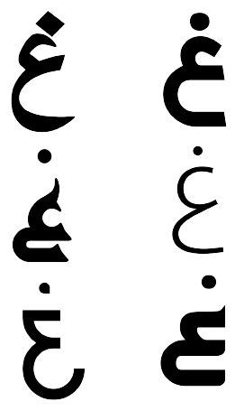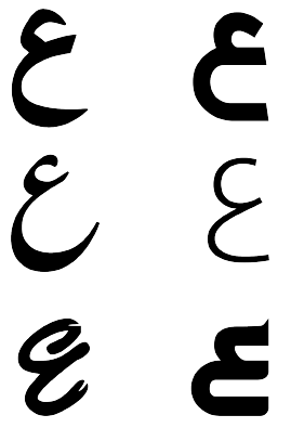 Die Anatomie ändert sich abhängig ihrer Position im Wort. Die isolierte Form besteht aus zwei Teilen. Der erste Teil ist ein kleiner Halbkreis, der von oben in einem Bogen nach links, nach unten und dann weiter nach rechts über der Grundlinie gezogen wird. Der zweite Teil besteht aus einem Schweif, der von dem unteren Teil des Halbkreises ausgeht und nach unten, nach rechts und dann weiter nach oben unter der Grundlinie geschrieben wird.